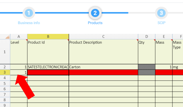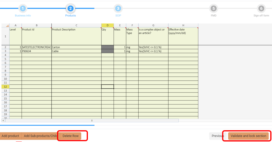 If you would like to enter additional product information to the portal data collection Request, pick the blank cell below the existing product and click Add Product