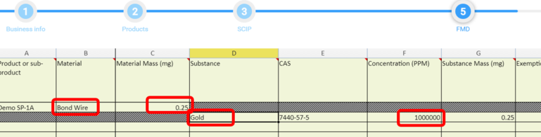 Then we will add materials and substances to the lowest level in the FMD section.