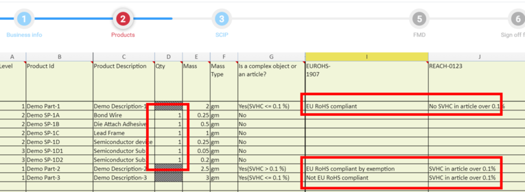 You must add Sub-Products to this section especially if they are REACH articles.