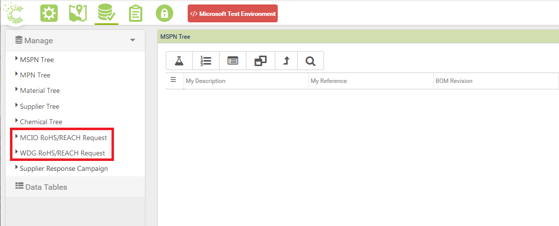 Step 1 - Click on the appropriate RoHS/REACH Request Campaign from the Data -> Manage menu