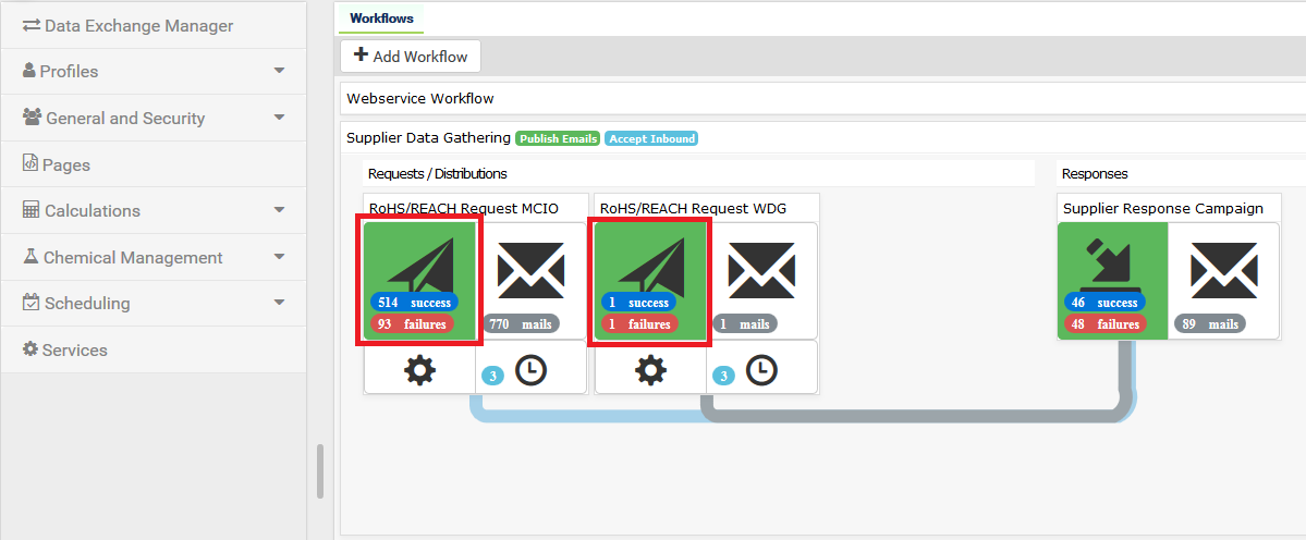 Requests will be sent to the Contact email address set up against the RoHS Contact type in the in the Supplier Tree. A reminder will be sent out to the same Supplier email address if a response is not received within the specified period (set by default to 1 week from initial request) After that an escalation will be emailed to the originator of the request if a response is still not received within the specified period (set by default to 2 weeks from initial request)